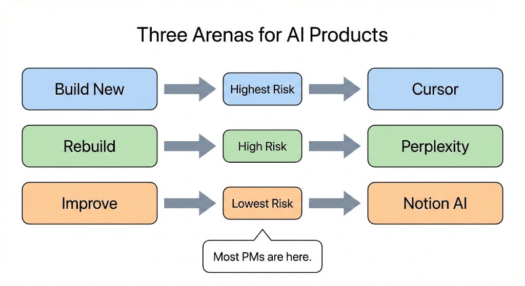Most PMs reading this are in the Improve lane. That’s a good place to be. It’s where the most consistent value gets created. But you need to know that’s where you are, because the team you need, the money you’ll spend, and how you’ll measure success all depend on it.