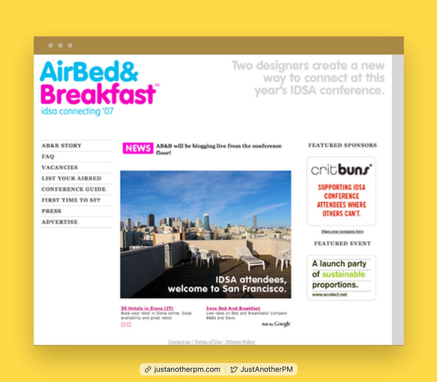 For example. Airbnb started with the below basic website design, which had a few listings. The goal: test the hypothesis that people would be willing to rent out their homes to strangers.