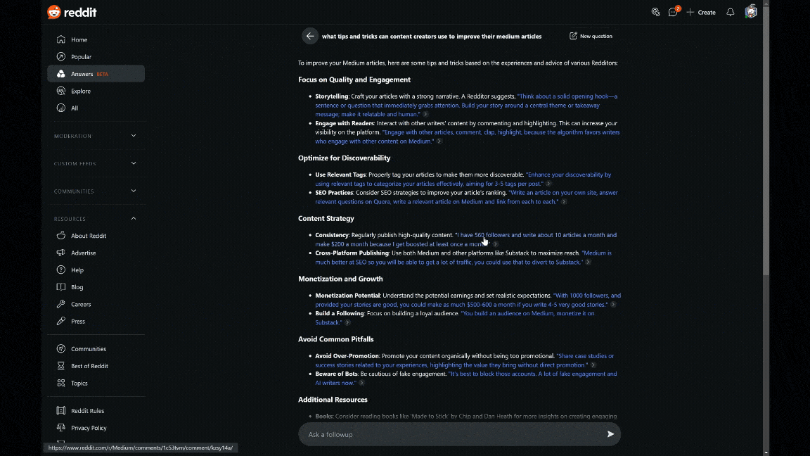 Built from real posts:Every Reddit Answer surfaces quotes and ideas from actual user comments, especially those that are highly upvoted and represent community consensus.