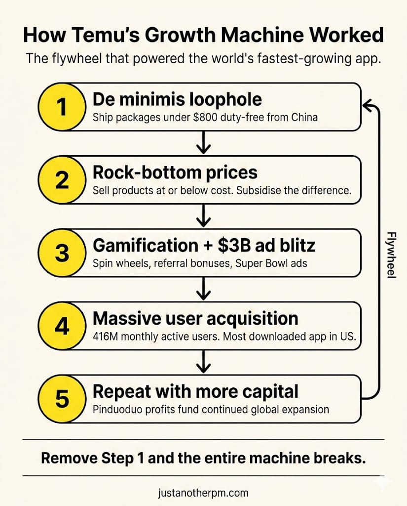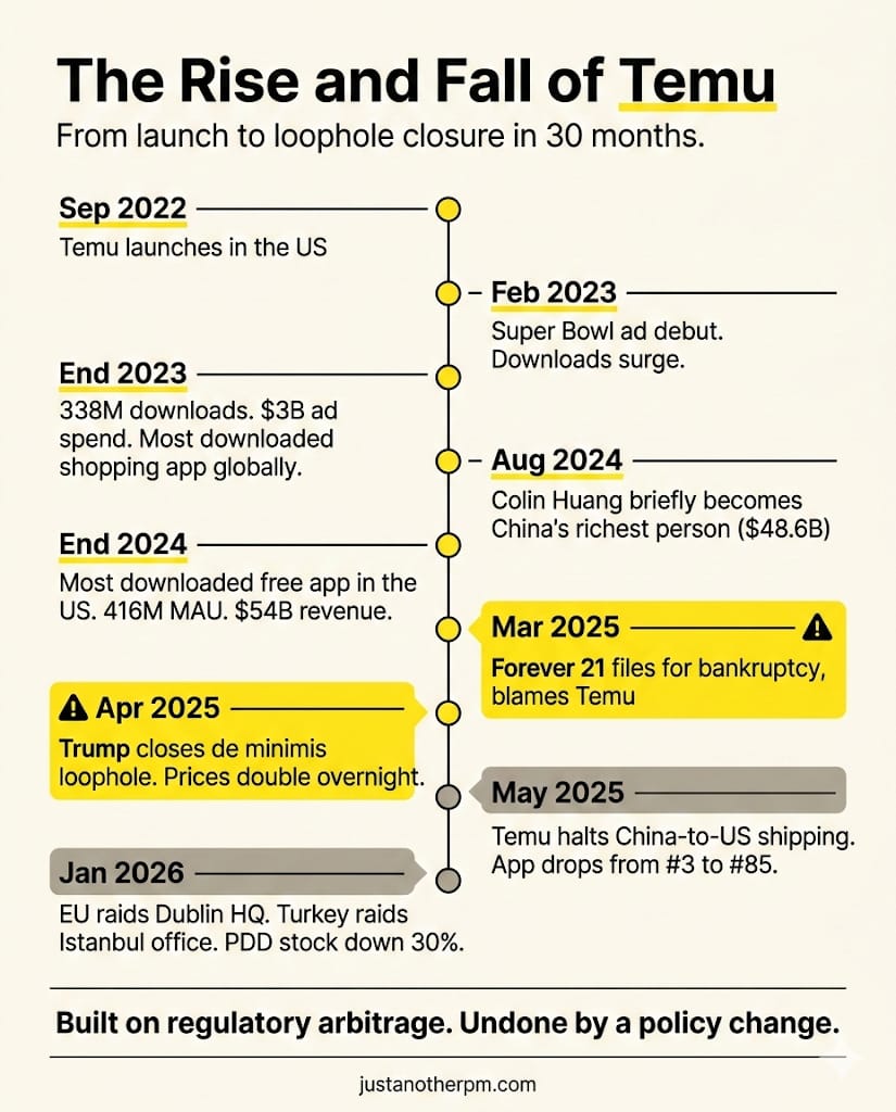 Temu did not build a product moat. It built a regulatory one. And regulatory moats, unlike product moats, can be taken away with a signature.