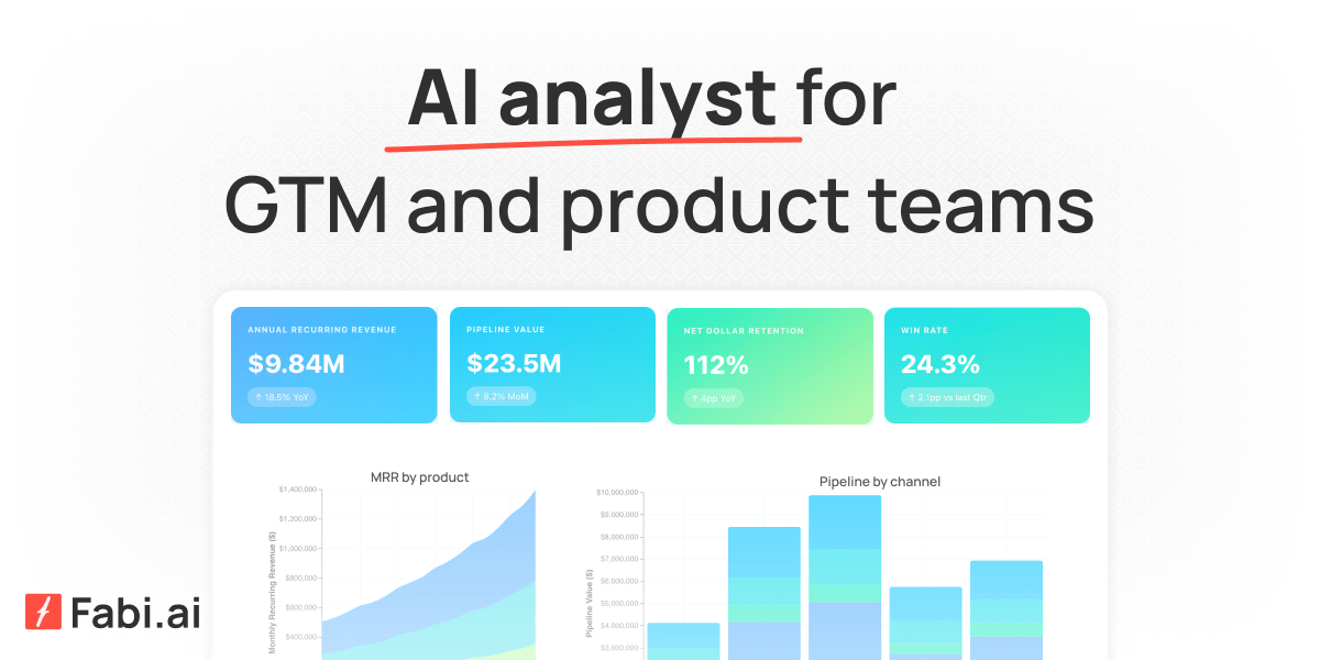 Fabi connects your entire stack and lets you ask plain-English questions. Which features drive retention? Where are users dropping off? You get answers, charts, and full dashboards in minutes. Just describe what you want and Fabi builds it.