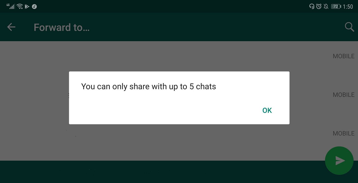 WhatsApp’s solution was to tweak the mechanics of message forwarding. In mid-2018, they limited forwards to 5 chats at once (down from 20 previously).